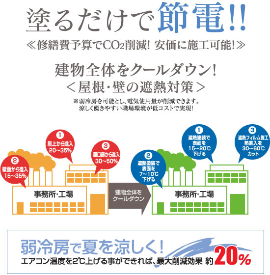 外気温30℃を超えると、コロニアルやねの表面温度は塗布前と塗布後で約10℃以上の差が出ます。室内温度を1℃下げると電気代を10%削減できるため、家庭での遮熱塗装はコスト削減による省エネ効果が大きい。