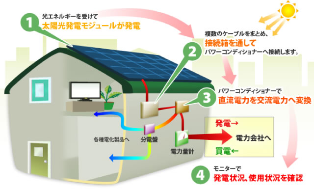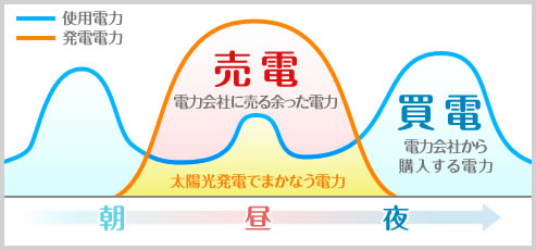 ※曇りや雨の日など発電した電力では足りない時や夜間などは、従来通り電力会社より利用
